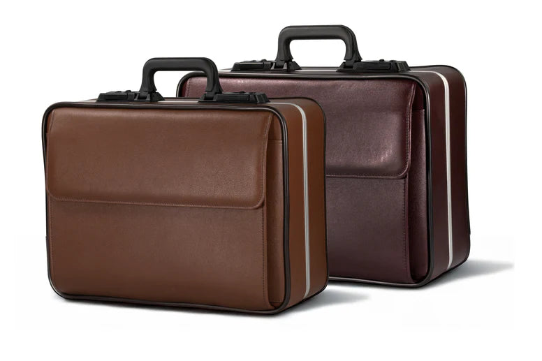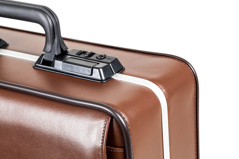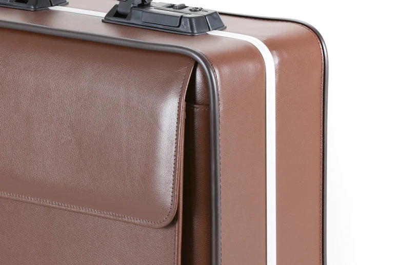 - Stabilná konštrukcia: Kufor z umelej alebo pravej kože spevnený hliníkovým rámom.