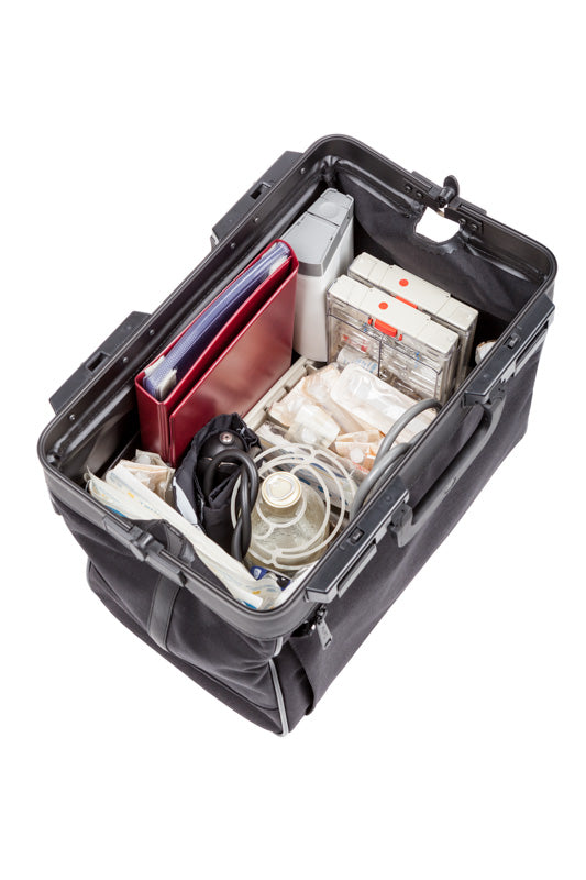 Táto robustná taška je ideálna pre každodenné použitie v ošetrovateľských službách. Vyrobená z odolného, umývateľného nylonu a pri prevedení s dvoma vreckami aj koženky, ponúka veľa priestoru a flexibilitu v organizovaní vnútra podľa vašich potrieb.