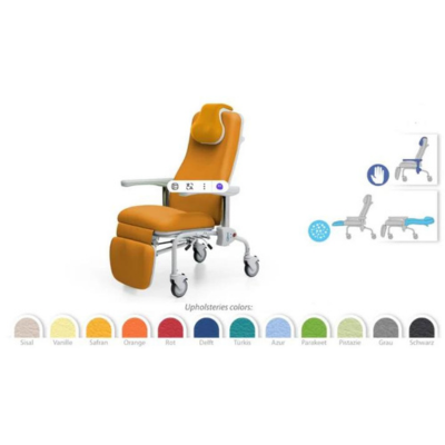 Toto kreslo je ideálne pre pohodlnú starostlivosť a všestranné použitie v zdravotníckych zariadeniach.